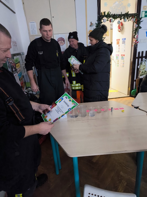 Egy egyenruhás szervezet bemutatkozását követően a diákok örömmel állták körül a tűzoltó gépjárműfecskendőnket folyamatos kérdezgetések mellett. Kérdéseikre kimerítő információt kaptak, többek között az önkéntes tűzoltó egyesületünk munkájáról, a riasztás rendszeréről, a bevetésen résztvevő tűzoltók védőruházatáról és a tűzoltó autónk főbb paramétereiről. Ezt követően a jármű legénységi fülkéjével és málházott felszerelésekkel ismerkedhettek meg a résztvevők.